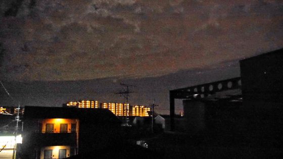 これは、2018年8月26日20時頃自宅のベランダから息子が南西の空を撮ったもの。なぜわざわざ写真を撮ったのかと言うと、6月18日の大阪北部地震が起こる明け方、息子は朝の5時頃目がさめて煙草を吸うためにベランに出てみたら、北の方から南の空にかけて帯状になった細長い大きな雲が出ていたので、印象に残ったそうである。ところが、一昨日の26日の夜に同じ様な細長い大きな雲がたなびいていたので、部屋に戻ってデジカメを取りに戻り写真を撮ったのがこの画像である。戻って写真を撮ろうとしたら雲の細長い形が見分けがつきにくくなってしまっていたので残念だと言い続けていた。