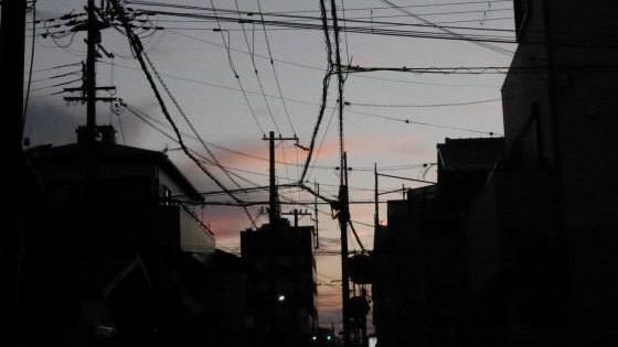 2018年8月18時34分 たまたま綺麗な夕焼けなので、デジカメを持って西の空を撮った。写真では解りにくいが雲は西の空を南から北へともこもこと筋状になっていた。それから約1時間20分後、大阪北部を震源地とするM4震度3の地震が起こった。
