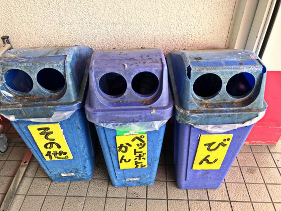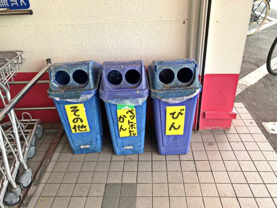 車の中で出たゴミをついでに捨てようと思ってゴミ箱を探したら、入り口の直ぐ側に3つのゴミ箱さんが並んでいた。