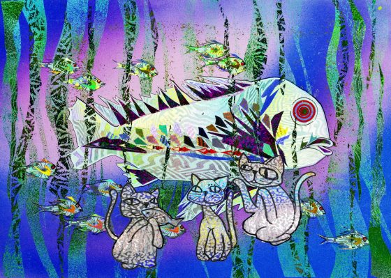 新鮮な魚は、なんとも言えず美味しかった。ネコタロウたちは、水中で魚に囲まれて食事をしているかのような気分になって幸せだった。