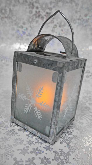 ろうそくを入れるランタン。4面には雪の模様が描かれている。
