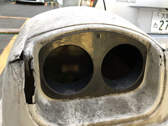 ヒビが入ってガタピシである。痛そう。人間なら、即入院というところ。