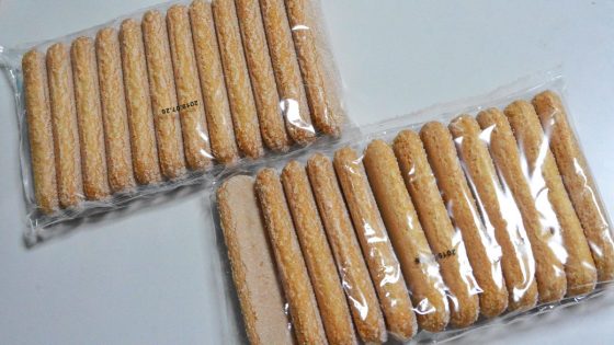 業務スーパーでよく見かけるお菓子「レディーフィンガー」、迷ったあげく買って帰る。