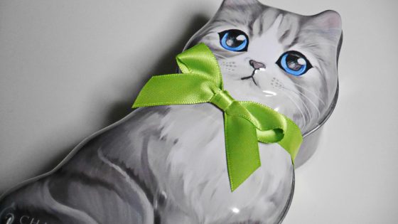 猫の缶に入ったプチフィナンシェ。中身より猫の缶がお気に入り。