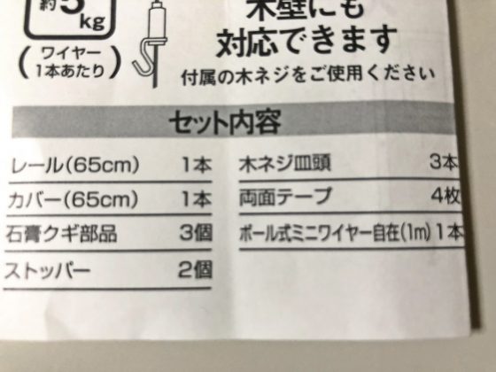 ニトリのピクチャーレールは、ワイヤー1本当たりやく5キロである。