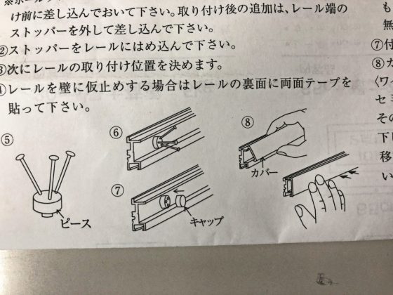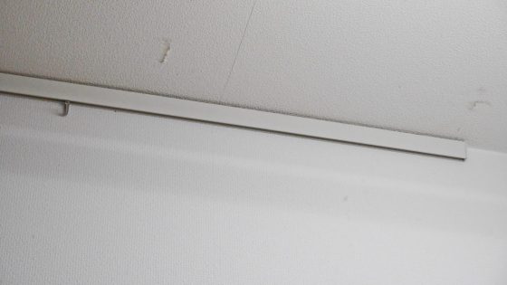 コーナンのレールは幅が狭いので天井の際に取り付けようとして天井に傷をつけてしまった。ただ、ニトリのレールは幅が広くて取り付けるのにはいいがレールフックがついてなくて直接ワイヤーをレールに入れる仕掛けになっているので、ワイヤーの取り外しが簡単にできないので不便である。