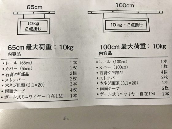 ニトリの100センチのレールの最大荷重は10キロで、同じサイズのコーナンの5キロに比べて倍である。