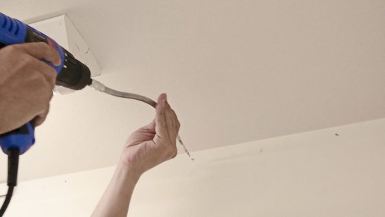 天井に傷をつけないために穴を開ける時は、フレキシブルドライバーを使った。