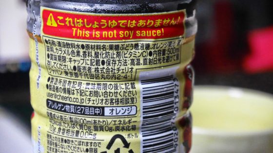 「これはしょうゆではありません!」と注意を呼びかけているが本当に醤油だと思って使った人がいるのかな。