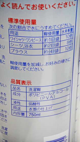 PVAは、示性式 (−CH2CH(OH)−)n でポリビニルアルコール (polyvinyl alcohol)と呼ばれる合成樹脂の一種で、親水性が高く弱酸性で、温水に可溶という特徴を持つ。 別名をポバール(POVAL)とも呼ばれ、クラレが1958年に世界で初めて事業化した機能性樹脂である。このPVA、液状のり(「アラビックヤマト」や「オーグルー」)や洗濯のり、郵便切手の裏糊としても使われている。