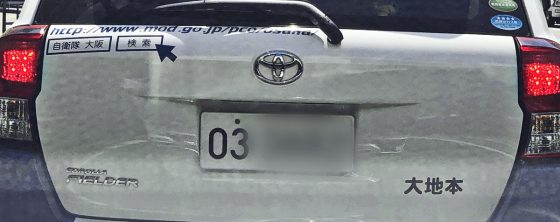 「自衛官募集中」「大地本」と書かれている。少なくとも自衛隊の車だとはわかる。しかし、数字だけのナンバープレートははじめて見た。早速スマホで検索。
