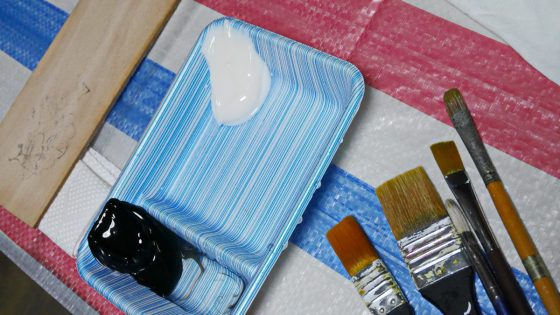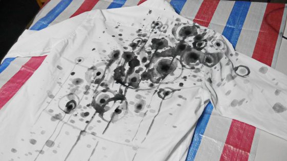 布用の黒のインクとバインダー(接着剤)を使う。水で薄めてばかりだと布への接着力が弱まるので、水の中にバインダーを入れるのである。