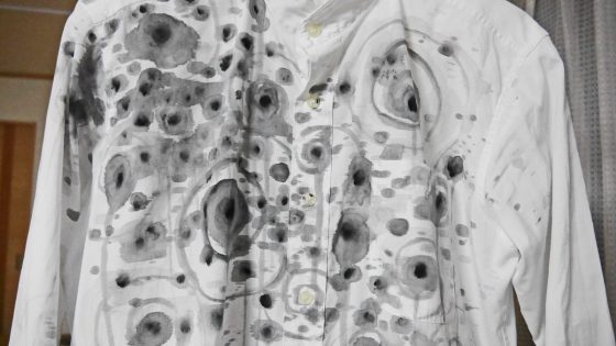 ランニングシャツで一度試していたが実際に描くとなるとちょっとこわごわ。少し力不足。
