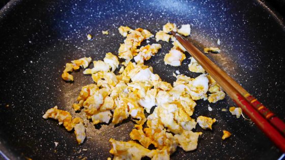 色んな味や香りが混じってしまうとカレーリーフ本来の香りが損なわれるので何も味付けしない炒り卵を作った。