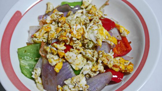 カレーリーフをふりかけた炒り卵を食べてみると爽やかな香りがしてなかなか美味しい。