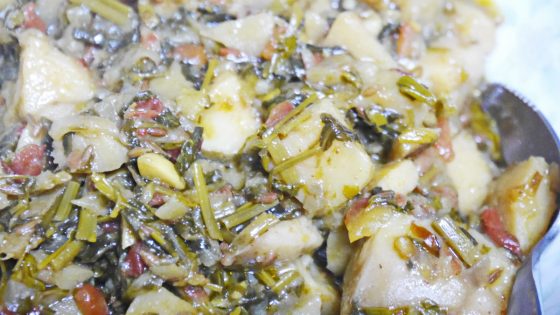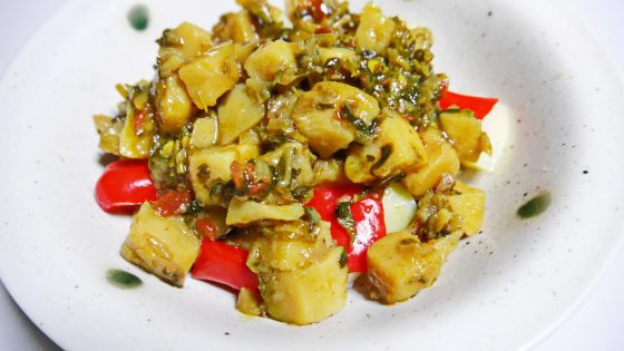 インド原産のポテトとフェヌグリークリーフのドライカレーということである。