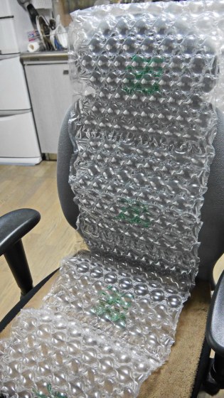 今現在、ブログを書いているときもこのバブルラップの上に座っている。