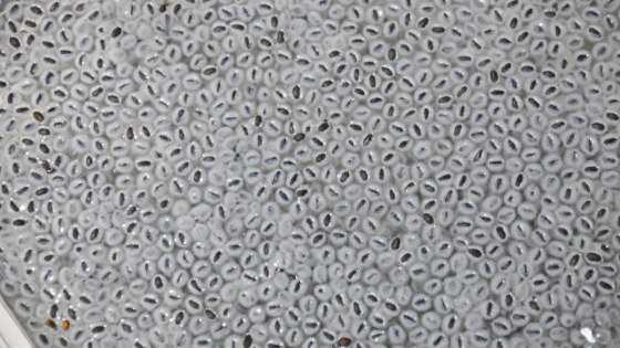 この細かい黒ごまのようなものを水に入れて戻すと30倍になるらしい。チアシードが10倍に増えると言われるからその3倍である。