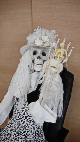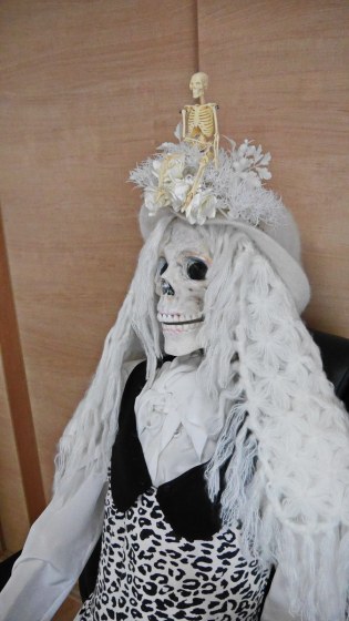 「最近、我が家にはもうひとり骸骨さんがリサイクルショップからやってきたみたい。でも、まだ会っていないのよ。向こうから挨拶に来るべきだと思っているわ。スッポンポンの骨体美は失礼だということを知っているのかしら。まあ、いいわ、ゆっくり待ちましょう。」