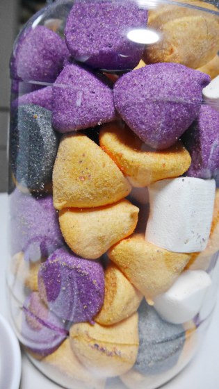 マシュマロの形はホワイトは普通の筒状、後は帽子型で黒と黄色と紫色がある。きっとこれらを組み合わせてハロウィンのおばけでも作れということだろう。