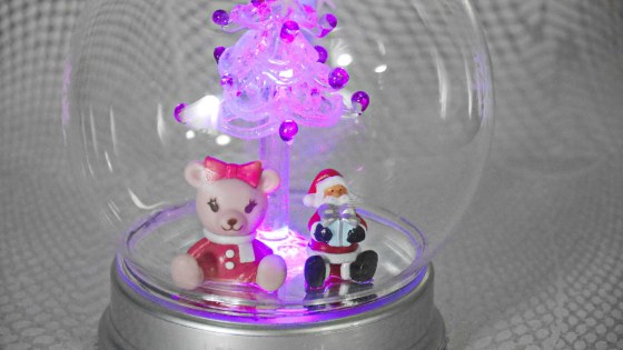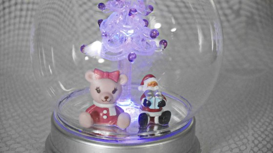 陶器のケーキと一緒に買った色が変わるサンタさん。これは青紫。