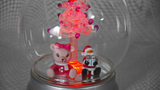 ガラスのドームの中でライトの光の色がが変わっていくクリスマスツリー。