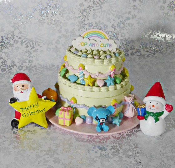 直径15センチぐらいの陶器のケーキである。両端にサンタと雪だるまを置けば立派なクリスマスケーキの出来上がり。