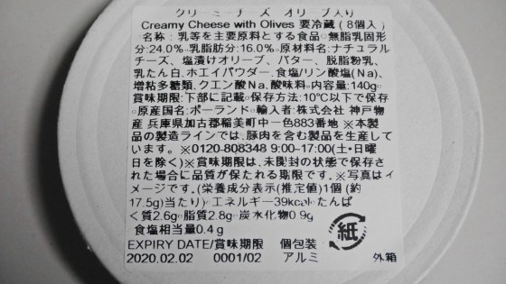 美味しくてブログに記録することを忘れてしまっていて、気がついたら残り2個となっていた。オリーブ好きにはたまらないチーズである。