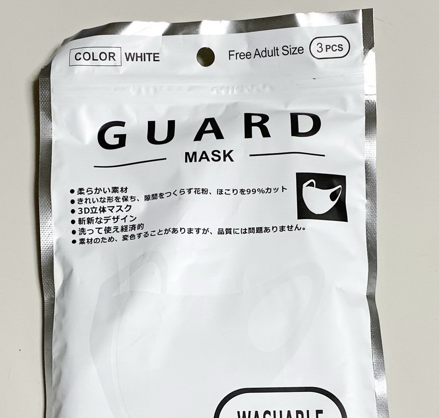 「ガード・マスク」と書かれて3枚298円で売られていた。立体型でウオッシャブルだと言うので、まあいいかと思って買った。 「柔らかい素材で、きれいな形を保ち斬新なデザインの型で顔にフィットして、洗って使え経済的」と書かれて … Read more