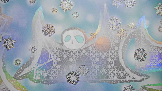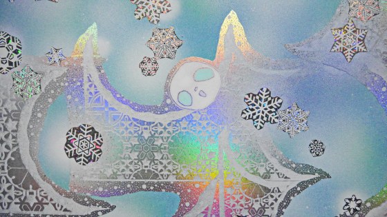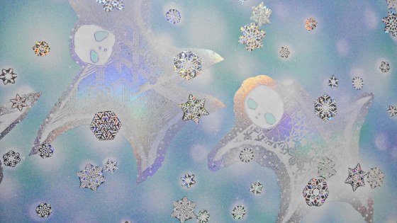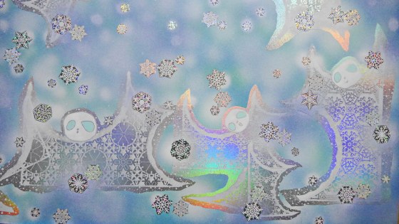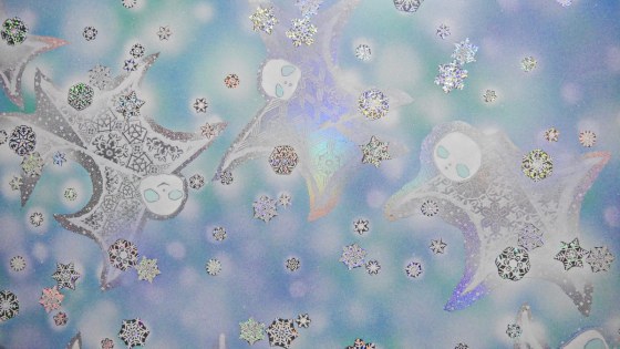 雪の大小を考えながら置いていく。平面的な処理はしているが、雪の大小で少しは遠近感を出したかった。