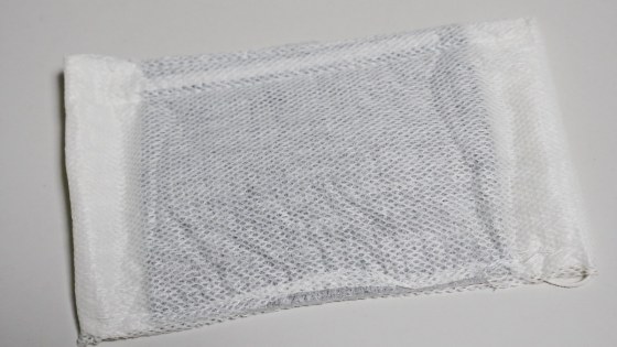 2~3ミリの厚さの真っ黒なスポンジ状のもの。防菌・防臭に効果があると書かれているから、普通の不織布マスクと重ねて使えばいいのかな。