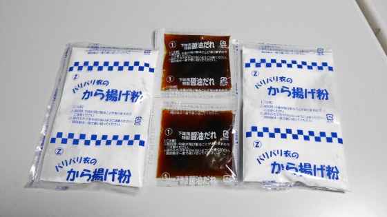 袋の中身はから揚げ粉とタレが2回分。