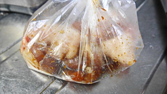 鶏肉をポリ袋に入れて醤油タレを加える。