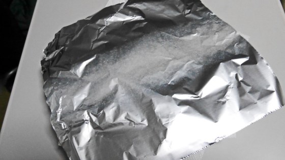 アルミホイルを被せて2分間予熱で蒸らす。