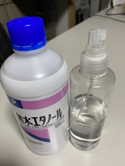 無水エタノールをアトマイザーに入れておけば、便利である。