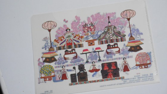 絵葉書が挟まれていたファイルシートがお雛祭りのイラストが描かれている。