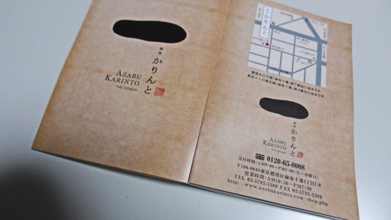 「麻布かりんと」の袋の中に入っていたパンフレット。