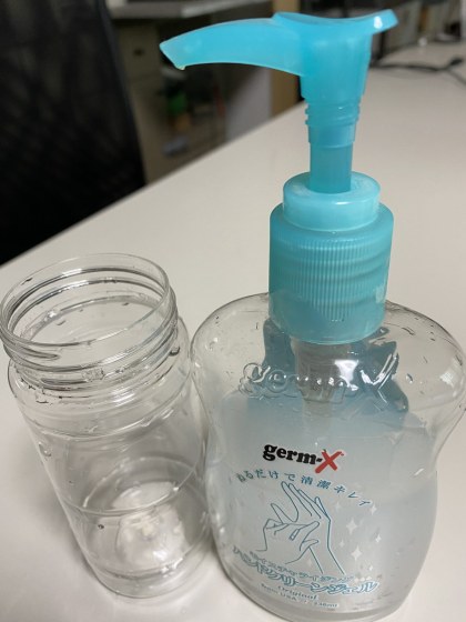 アルコールばかりで手を消毒すると脱脂されてがさがさになる。そこで、ほんの僅か1CCぐらいグリンセリンを加えておくと手の荒れを防いでくれる。