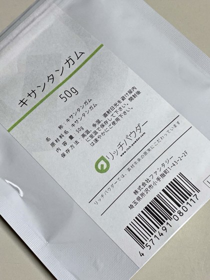 NETで調べて増粘剤としてキサンタンガムなるものを購入。これは今でも売っている。