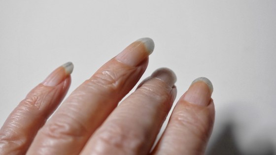 原因がわかった。仕事柄爪を伸ばしているから、オキシメーターの奥にまで届かず、爪のアーチが丸い為きっちり挟めていなかったのであろう。(爪が絵の具に染まってやや青い)