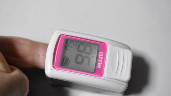 血中酸素濃度を見ることで、呼吸により十分な酸素を取り込めているかどうかを判断できます。具体的には血液中、赤血球の中に多数あるヘモグロビンのうち、どれだけが酸素を捉えているかを計測します。