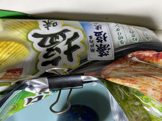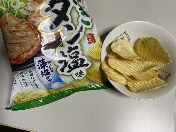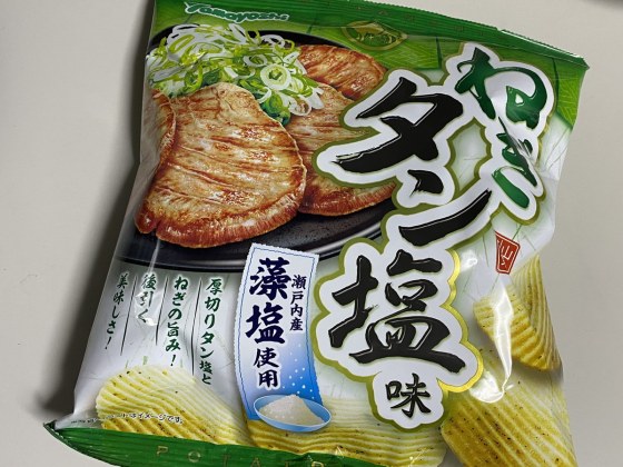 こんかいはあじはこいめの「ネギタン塩味」のポテチップを選んだ。