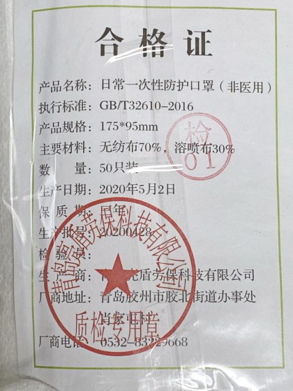 息子にきくと、ただ検品したという意味らしい特に何もないマークで、中国の国家検印ではないということ。要するに、らしいハンコマークということなのか。昔、「太鼓判」というハンコが流行ったがあのようなものか。
