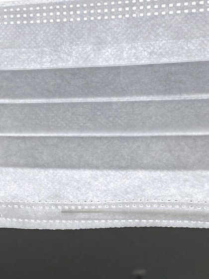 マスクの折り目が2つしかない。3層になっているがやや薄く感じる。