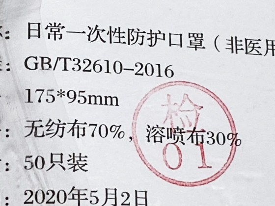 箱もなくPPフィルムの袋に入れただけもの。簡易包装と言えばそれまでではあるが、フィルムの透明袋越し見えるマスクはごくごく普通の不織布マスクのように見えた。帰ってから、1枚とって念の為にアルコールを吹きかけてマスクをかけてみたが、サイズは普通サイズらしいがブカブカで女性には大きすぎる。