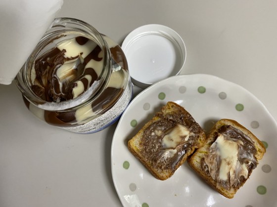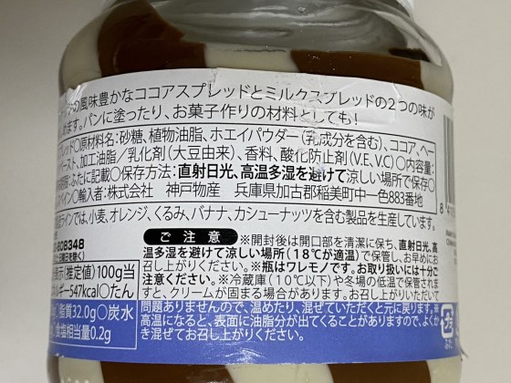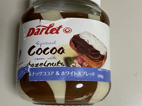 業務スーパーでココアとクリームのツートンカラーのスプレッドを買った。
