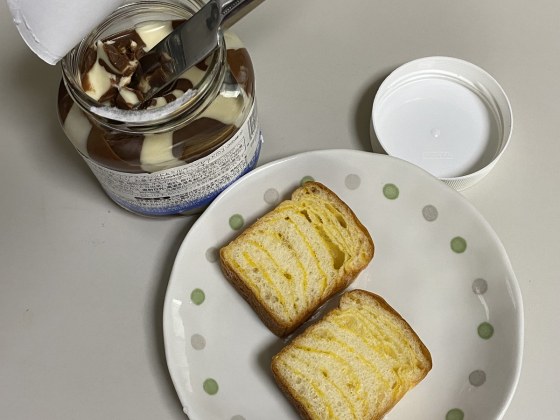小さな食パンにクリームを塗って試食することにした。