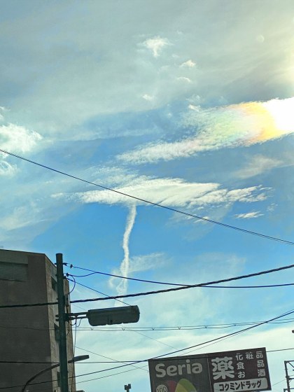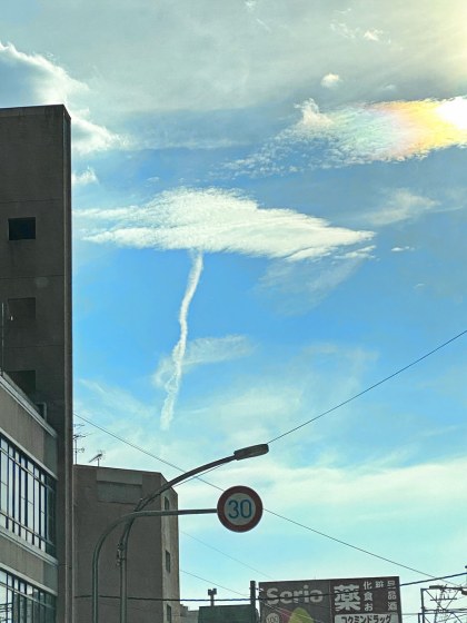 垂直に上がったこの雲は、これから真の新型コロナによるパンデミックが始まることの予兆かなと思って、思わず鳥肌が立つ。このへんてこな雲を名付けて「コロナ雲」。