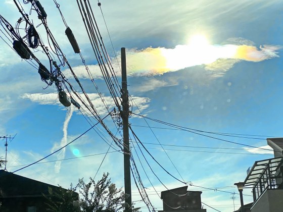斜め上には、太陽が眩しく見えているが、その周りに七色の輪が見える。梅雨明けに見えたこの空は神秘的ですらある。