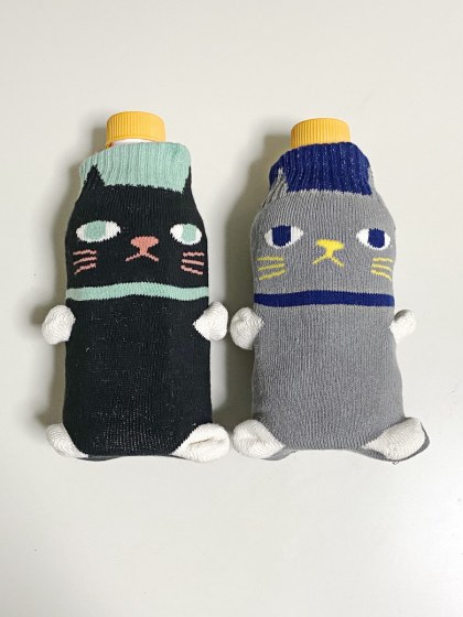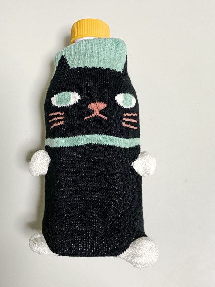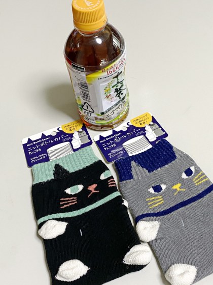 久しぶりに100均へ行って見つけたのがこの猫のペットボトルホルダーである。